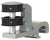 喂入量測(cè)轉(zhuǎn)輪量取介于橡筋紗送紗器與喂紗嘴之間橡筋紗因延伸的喂入量數(shù)值。
